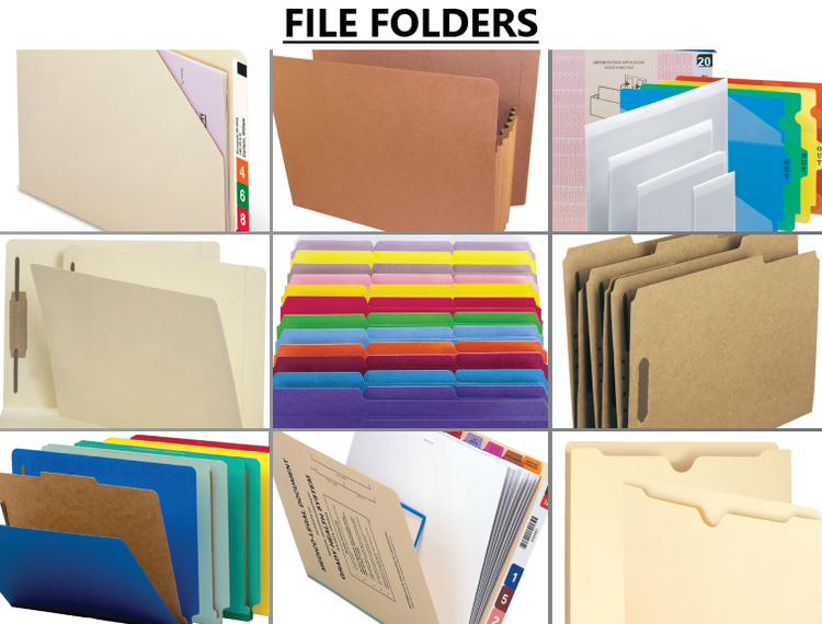 File folders are available in many styles and paper weights. From standard 11 point stock to heavy weight 14 point stock to standard manila or colored stock, we offer most styles to match your existing filing system or to create your own.