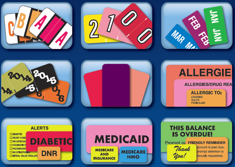 We offer products to help organize your office using color code filing products like alphabetic and numeric labels, year and month code labels, file folders, index tabs and the like.