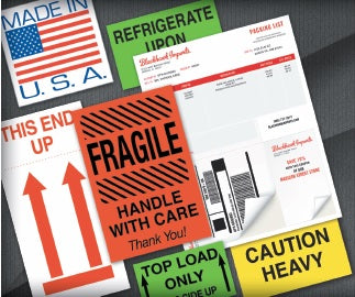 Use Shipping and Handling self-adhesive labels on cartons and pallets to ensure proper handling and reduce errors with no more hand written instructions. These fluorescent labels attract immediate attention while conveying a brief message that is easy to read and understand. These pressure sensitive labels are made with permanent adhesive. Labels are on 3® cores and the overall diameter varies depending on size of label.